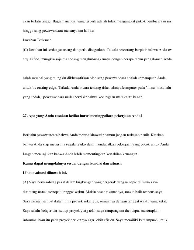 Setiap pertanyaan akan memiliki maksud dan tujuan untuk menilai. Nah di video #interviewanalysis ini, kita mau bahas cara menjaw. Jan 18, 2021 · nah, sebelum jadwalnya tiba, kamu wajib menyiapkan berbagai jawaban dan alasan atas pertanyaan nanti, salah satunya adalah "mengapa perusahaan harus menerima anda?". Pertanyaan yang terkait adalah mengapa kita harus mempekerjakan anda daripada pelamar lainnya? saat menjawab pertanyaan ini, ingatlah bahwa manajer perekrutan sedang mencari untuk memecahkan masalah. Jul 01, 2021 · contoh alasan mengapa perusahaan harus menerima anda: